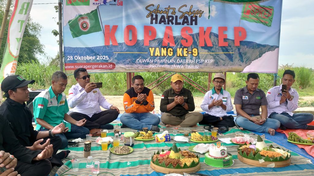 Gresik, Media Suarapergerakan.id 02 November 2025 – Dalam rangka memperingati Hari Lahir (Harlah) Komando Pasukan KEP (Kopaskep) ke-9, Dewan Pimpinan Daerah (DPD) Federasi Serikat Pekerja Kimia Energi Pertambangan (FSP KEP) Provinsi Jawa Timur menggelar acara tasyakuran di Kantor Sekretariat DPC FSP KEP Kabupaten Gresik, yang berlokasi di Pendem, Desa Banyuurip, Kecamatan Kedamean, Gresik.