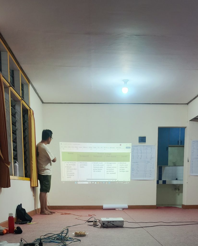 Sesi diskusi dipimpin langsung oleh Pak Andri, yang memandu peserta untuk menelusuri hasil analisis data yang telah dikumpulkan pada hari sebelumnya. Peserta diajak untuk membaca ulang temuan-temuan penting dan menghubungkannya dengan peta stakeholder yang telah disusun, guna melihat keterkaitan antaraktor dan pengaruh kebijakan terhadap kesejahteraan buruh.