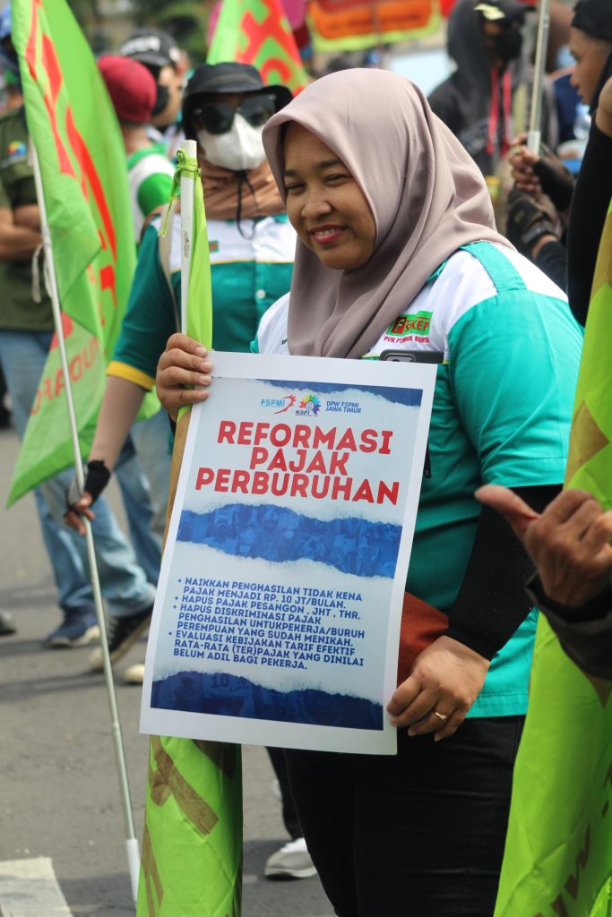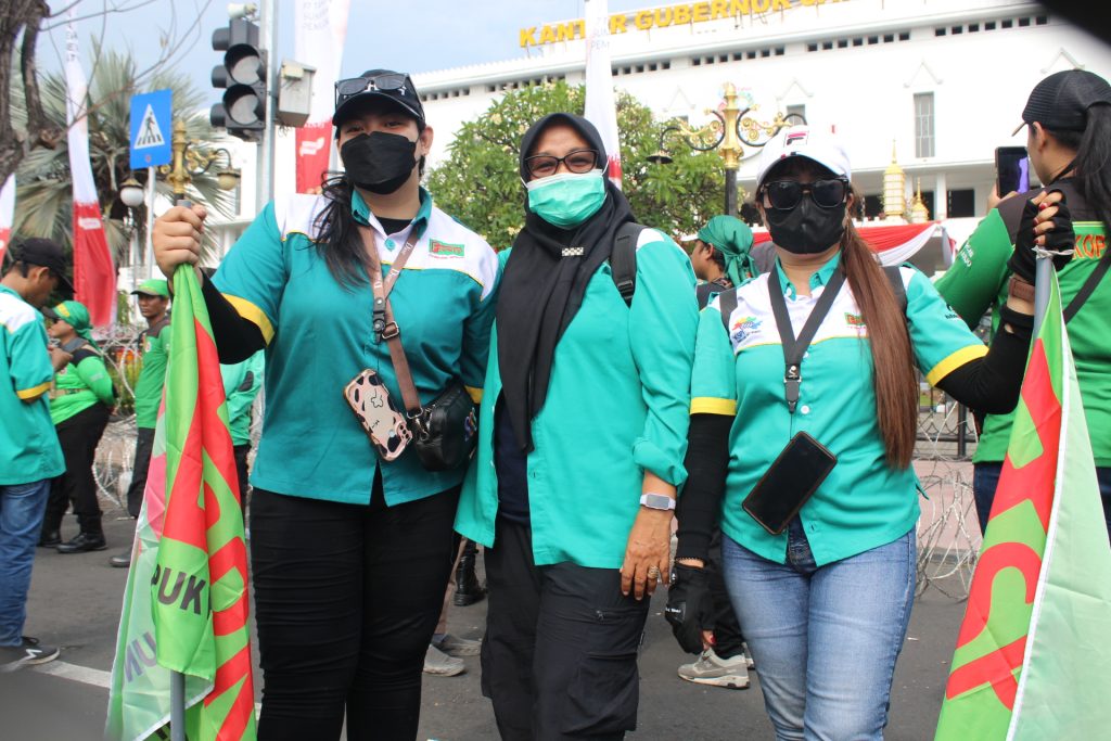 Yang menarik perhatian publik, dalam aksi ini tampak barisan Buruh perempuan dari Federasi Serikat Pekerja Kimia, Energi, Pertambangan, Minyak,Gas Bumi dan Umum (FSP KEP-KSPI) Jawa Timur yang dengan semangat tinggi ikut berpartisipasi, membawa poster tuntutan, serta menyerukan keadilan upah di tengah panasnya cuaca. Kehadiran mereka menjadi simbol ketangguhan perempuan buruh yang tidak hanya berperan di rumah tangga, tetapi juga turut memperjuangkan hak-hak pekerja di ruang publik.