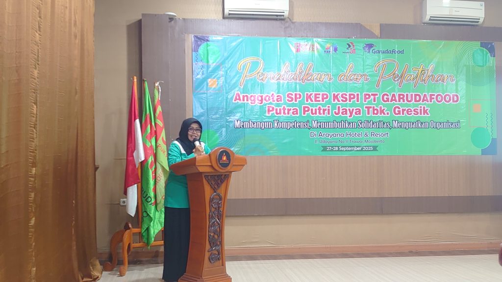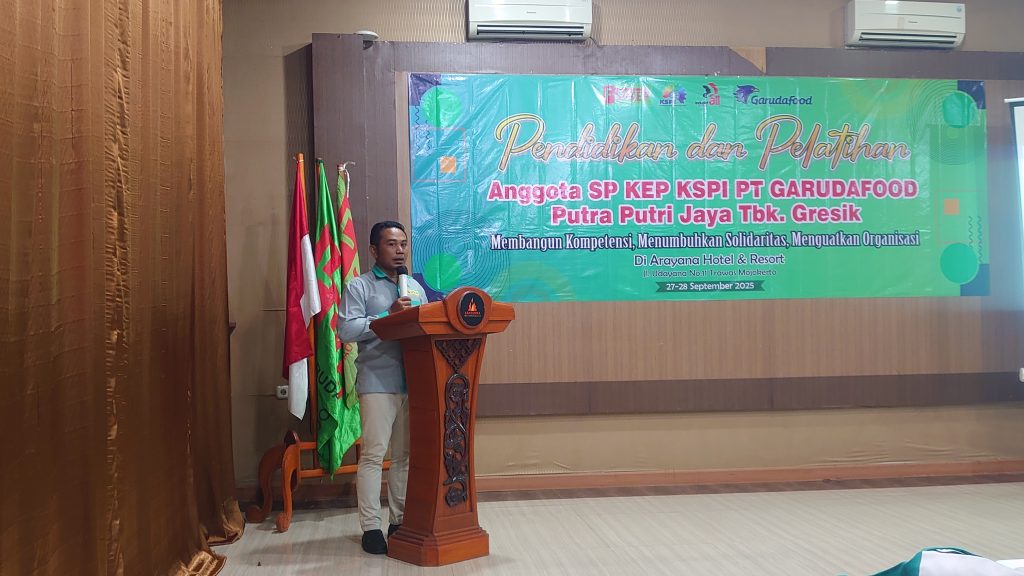 Mojokerto,Suarapergerakan.id 27 September 2025 – PUK SP KEP PT. Garudafood PPJ sukses menyelenggarakan kegiatan Pendidikan dan Pelatihan Anggota yang digelar di Arayana Hotel & Resort, Jl. Udayana No. 11, Trawas, Mojokerto. Kegiatan ini mengusung tema “Membangun Kompetensi, Menumbuhkan Solidaritas, Menguatkan Organisasi” sebagai upaya meningkatkan kualitas serta kapasitas sumber daya manusia di tubuh serikat pekerja.